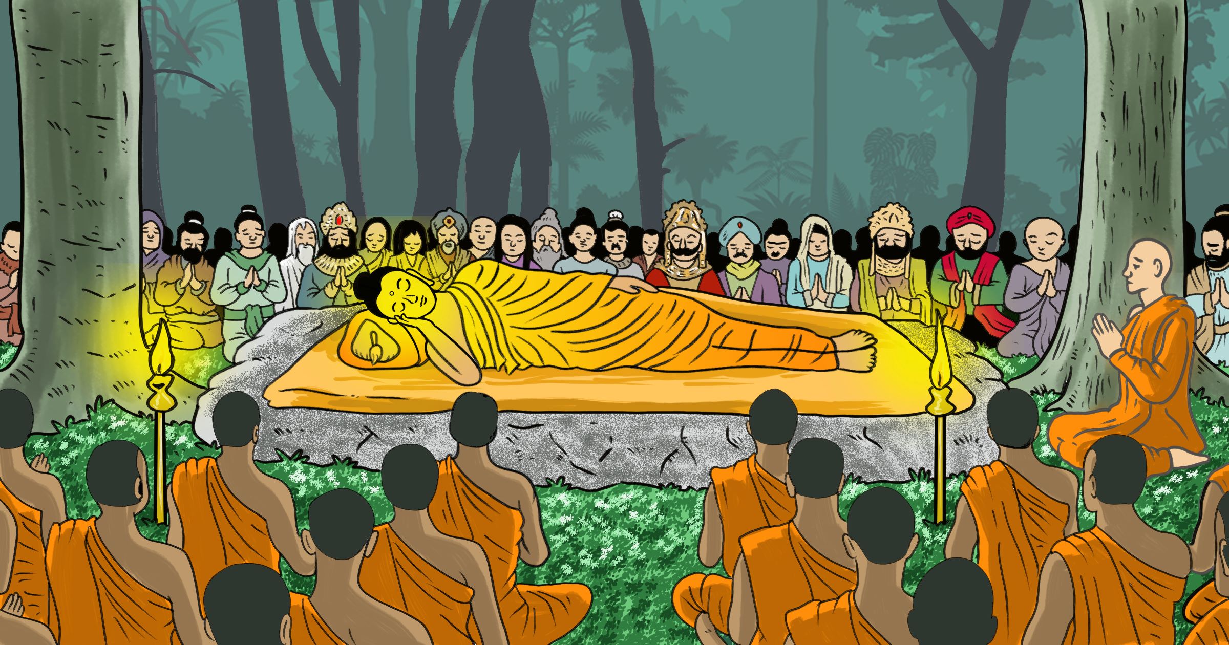 At this point, the Buddha was in the town of Kusinārā. As it became increasingly clear that the Buddha’s passing was very imminent, Ānanda started crying. The Buddha chided him gently, “Ānanda, do not cry. Have I not already taught you that all things that are pleasant and delightful are impermanent and subject to separation? So how could it be, Ānanda, that whatever is born should not pass away?”