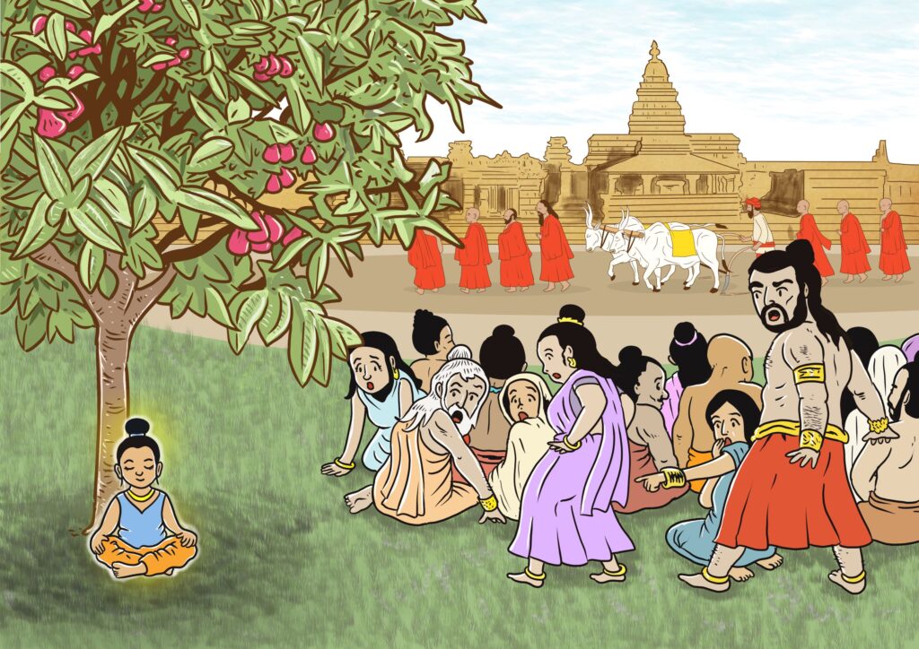 When Siddhattha was a young child, a remarkable thing happened. His father presided over the Plowing Festival and brought along his courtiers, his family, and their caretakers. At some point, the adults were so preoccupied that they neglectfully left the young prince unattended. Young Siddhattha, under a rose-apple tree and seeing nobody around him, sat cross-legged, focused on his breath, and spontaneously went into a state of deep meditative concentration known as the first jhāna (which we will discuss later in this series). When the adults returned to see the young child in deep meditative concentration, they were awestruck. This was a one-time mini-miracle, Siddhattha never again went into meditative concentration until he became a full-time seeker of truth as an adult, but this incident would have a pivotal effect on his final ascent to enlightenment.
