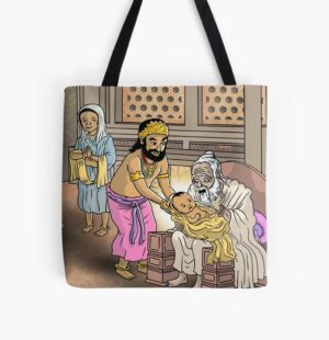 When the baby was five days old, in keeping with local tradition, a naming ceremony was held and the prince was named Siddhattha Gotama. Siddhattha means “wish fulfilled” and Gotama was the family name (also commonly spelled as Gautama).[3] As part of the ceremony, eight distinguished Brahmin scholars were invited to read the baby’s future. Seven of the scholars predicted that young Siddhattha would one day grow up either to be a great king (a “universal monarch”) or a great sage. The youngest of the eight, Koṇḍañña, confidently predicted that Siddhattha would grow up to become a buddha, a fully enlightened one. Many years later, Koṇḍañña would become an early student of the Buddha and the very first to reach enlightenment.[4]