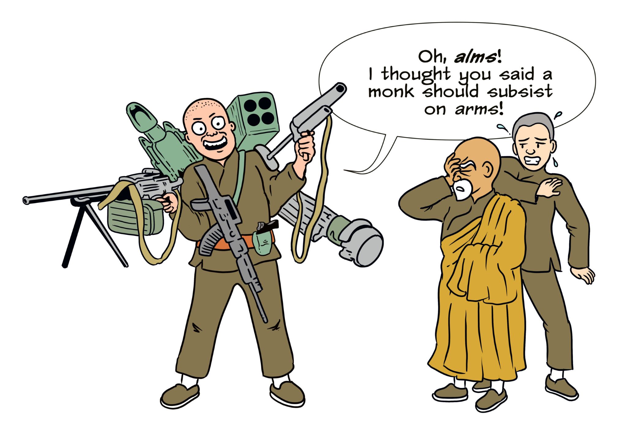 Recognizing the outsized impact of one’s livelihood, the Buddha prescribed right livelihood as one component of the Noble Eightfold Path. And once again, he gave specific guidelines. For lay people, he recommends not engaging in these five trades: trading in weapons, living beings, meat, intoxicants, and poison.[1] For monastics, right livelihood means having very few material possessions, needing very little, and depending on the generosity of donors for basic needs such as food and clothing. In other words, the right livelihood for a monk is to subsist on alms. Even the very term bhikkhu, usually translated as monk, literally means mendicant. The Buddha also specifically forbade monastics from engaging in fortune-telling or selling lucky charms.[2]