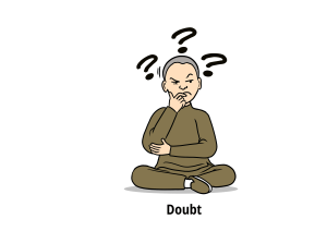 Doubt traditionally refers to the inability to place confidence in the Buddha, Dharma, Sangha (the monastic community)[8], and the training, and by extension, also the lack of confidence in one’s current teacher.[9]  It can also extend to doubt in oneself [10], i.e., even if you have full confidence in the teachings and the teacher, you have no confidence in your own ability to carry it out.  I find this perspective useful, because it afflicts me a lot.
