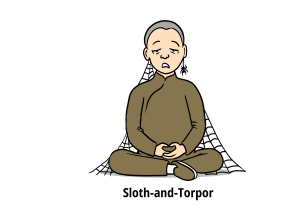 Sloth-and-torpor are actually two distinct mental states rolled into one hindrance.  Sloth is characterized by dullness and lack of energy, while torpor is characterized by drowsiness and smothering unwieldiness.[3]  Together, they describe a mind that is sleepy, saddled with mental inertia, and too “heavy” to wield.