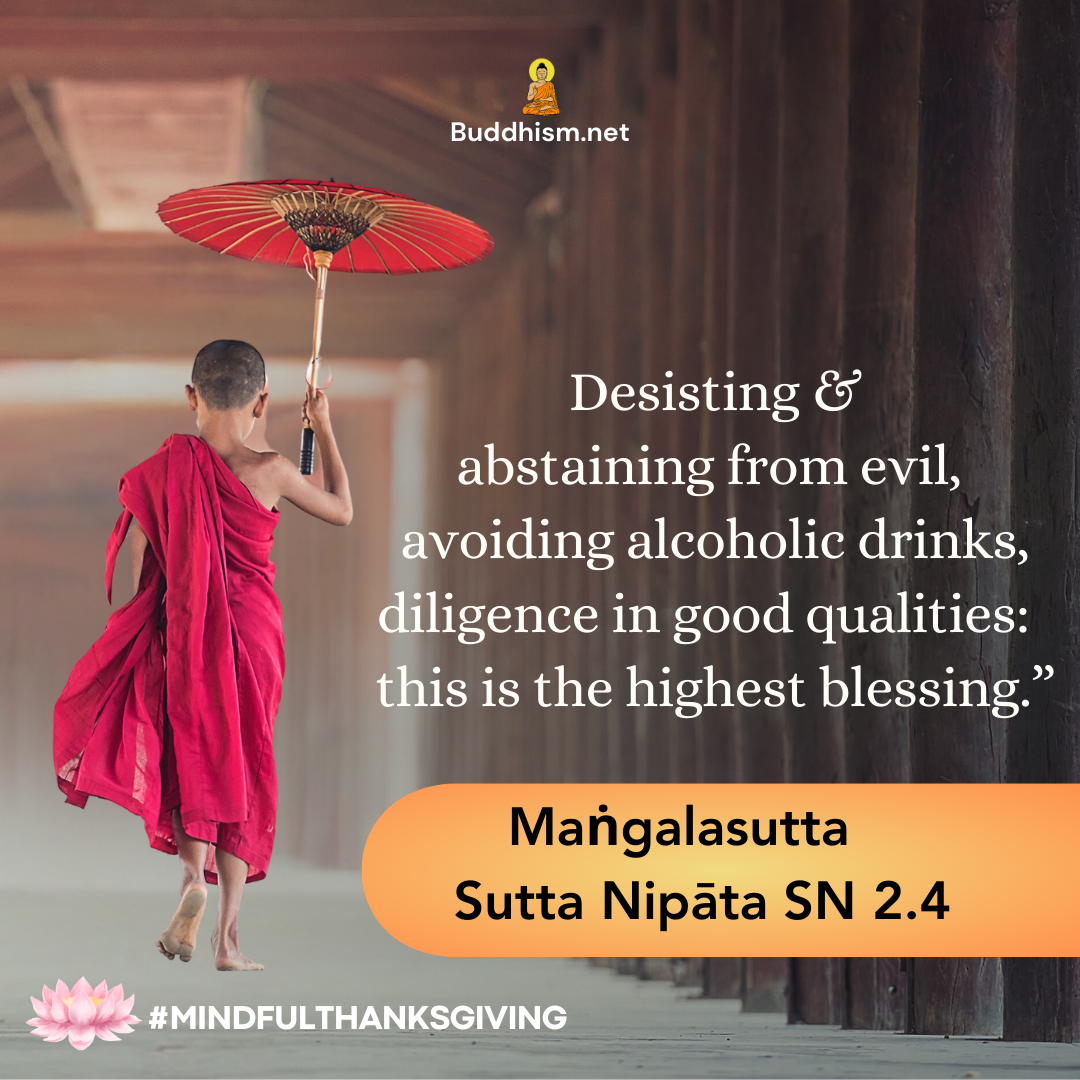 Desisting and abstaining from evil, avoiding alcoholic drinks, diligence in good qualities: this is the highest blessing.