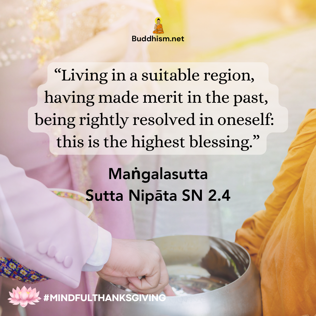 Living in a suitable region, having made merit in the past, being rightly resolved in oneself, this is the highest blessing.