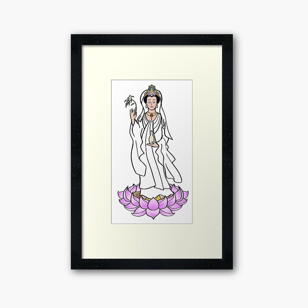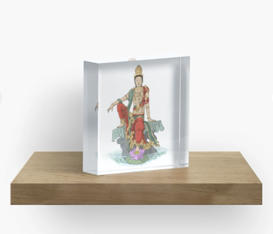 • Guan Yin Bodhisattva Series — Standing on Lotus, Water Moon Guan Yin: Small but profound, these minimalist figurines of the Bodhisattva of Compassion in the form of wall prints, acrylic blocks, or framed art can sit on your desk or altar, reminding you to center gratitude and compassion in your daily life.
