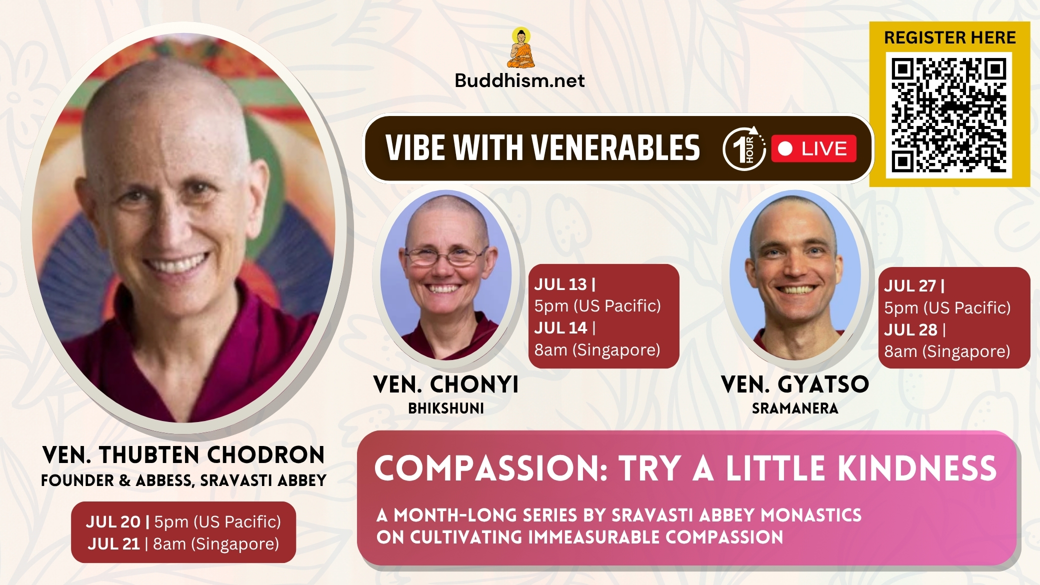 Each Venerable speaker will share their insights on how to deepen this immeasurable quality, making it an integral part of our lives.